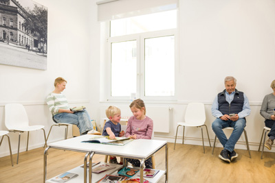 Unsere Praxis befindet sich im 1. OG (ohne Fahrstuhl).